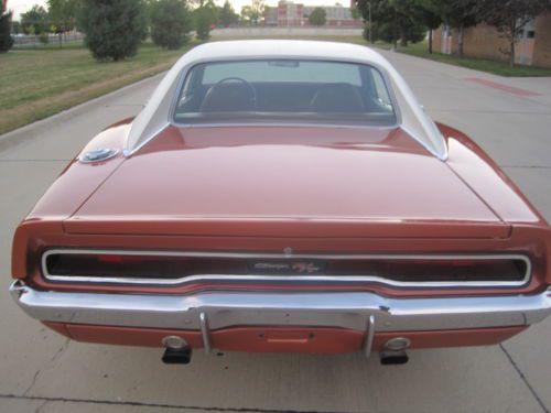 NO RESERVE SO PLEASE BID TO BUY.. An Amazing 1970 Burnt Orange RT Dodge Charger... With the rare C- Striping.. Number matching engine and tranny.. The paint job is approximately 25 years old and it shows no rust.. Rust free...You can stick a magnet around the entire car. I also have a GIANT binder of receipts and documents that go with the car.. This is a very rare burnt orange Charger with burnt orange interior with the C-Striping.. The air conditioning unit is an a box and comes with there car. There is three boxes of additional parts and a lot of miscellaneous bags of stuff that comes with the Charger. Don't miss out as these cars this nice are getting hard to find... The car has only seen a few hundred miles the last several years.. Time for a new home. I picked this Charger up on a packaged deal and I'm putting it out on the market after being with the previous owner for the last 25yrs. He advised the car spent its early years in Arizona and California and he has kept it in a temperature controlled garage.. I don't believe the car has ever been cut and retains original panels and fenders. Its an AMAZING CAR.. A GIANT BINDER OF RECEIPTS AND HISTORY SINCE NEW.. The engine is the original numbers matching motor block. I also have the number matching tranny that's out of the car that comes with the car.. The previous owner placed a TCI auto street fighter tranny in it for now. He said there is nothing wrong with the original numbers matching tranny he upgraded several years ago but was smart enough to keep the original one. The interior is damn sweet. There is one small quarter size burn spot on passenger seat. ( From a shop light). Carpet is new. Backseat is like it has never been sat on. The front buckets are also very very nice. Dash looks great. Dash gauges aren't working. Not sure why. The car starts right up and runs like a beast. Idles like a big block should. When I have drove it she runs great until it gets hot and then it idles low and wants to die at the stoplight. Runs amazing down the road. I believe its the new carb he put on it. He said it only has 75 miles or so on carb and needs adjusted. Minor fix I'm sure for a motor guy an easy fix. I just don't want to mess with it. But the engine does not smoke or knock. It sounds like a beast.. Sold AS/IS with no warranty implied or expressed. The vehicle is 44 years old. I have done my best to describe the vehicle to the best of my ability and shall not be held liable for anything I might not have know. AMAZING AMAZING 1970 DODGE CHARGER RT.. Please email for additional pictures or questions. For sale locally so I reserve the right to end the listing early..