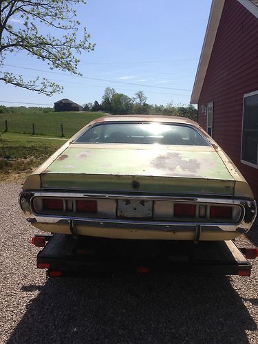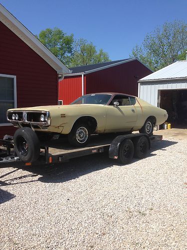 Here is a good starter project. 1971 Dodge Charger. What you see is what you get. Factory paint and body. Above average body, some dents but not rusted out. Frame rails are in great condition. Bumpers are good, taillights good. bucket seats, floor shift, console, 150 MPH rallye dash, 8 3/4 rear. Nice set of 14" rallye wheels on the car. Worst part about the car is drivers floor and drivers side trunk pan needs replaced. I will give a good trunk pan to the high bidder. No engine or trans, open for whatever combo you want. Clear Indiana title. High bidder responsible for picking up or shipping of the vehicle. A $200 non refundable deposit due within 24 hours of the auctions end, the rest due on pickup. Bidders urged to ask questions or set up an appointment to view the car before bidding. This is a good clean starter car, but needs alot of work. 71 Chargers are drying up, this would make a nice car done. Casey 812-325-5969