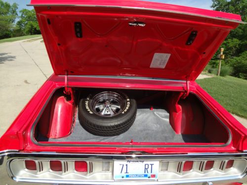 !971 Charger R/T, 440 HP, 4 speed, Hemi drive line. Ground up restoration 7 years ago. Needs A/C lines. Tach dose not work. Engine rebuilt by Don's crankshaft of Cincinnati, Ohio. The engine is not original. Trans and rear end are.