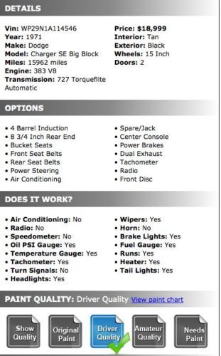 1971 Dodge Charger Se Big Block 383 V8 727 Ps A/c Pb Dual Exhuast Tach on 2040-cars