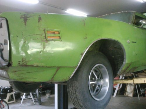 1971 super bee still wearing some orig fj6 go green paint .project car that has been started .rear of the car has had all the bad metal replaced .new full AMD quarters .outer wheelhouses ,drop-offs ,and one piece trunk floor ,.front fenders need some work have rot free front fenders for car floors/frame are solid .a/c car its all there .chrome luggage rack ..car was in storage for approx. 15 yrs before my purchase .have most parts to finish except seat covers and headliner and top .complete with fender tag and build sheet .,lots of spare parts .car has 360 in it now ,I will include a date code 340 block .super rare car only 268 H code bees were built in 71 .and in this fj6/option combo probably one of one ?if your the numbers guy ..interested .ask questions . |