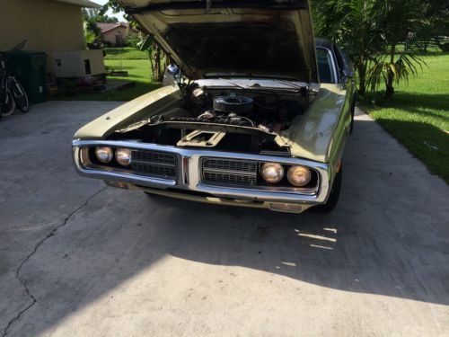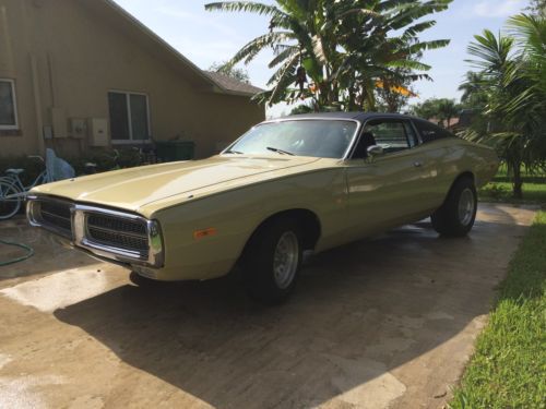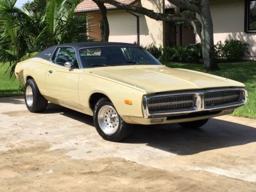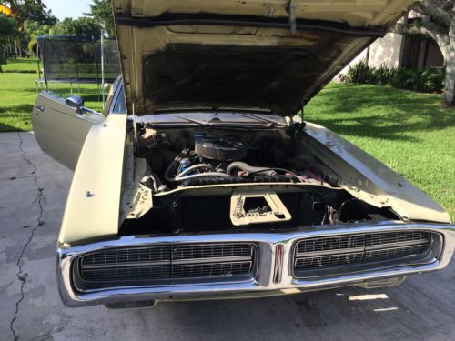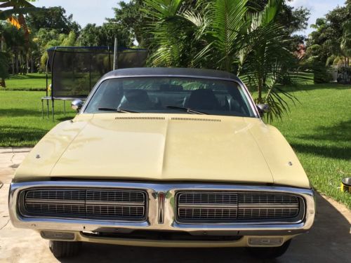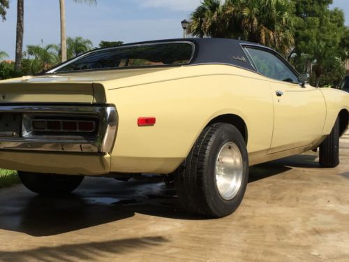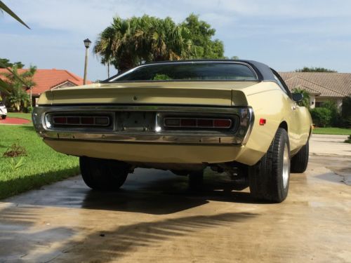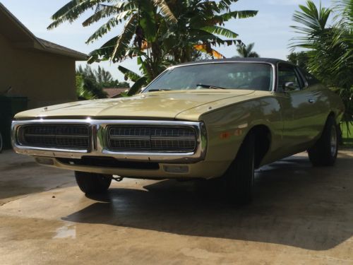 1972 Charger SE with hideaway headlights. This is a California car, with solid floor, trunk pans, Quarters, rockers, and fenders are all rust free ( please look at photos ). The Charger has a rebuilt 318 with an aluminum intake and 4bbl ( Edelbrock )mild cam. The exhaust flows thru a set of full length headers and flowmaster chambered mufflers. 727 torque flite Automatic transmission in working order. Front disc brakes Fresh paint, in factory GY4 Light Gold, The exterior body was not striped before paint and has some body imperfections are seen under the paint. New Black Vinyl top, Refinished interior. Interior has front bucket seats with 6 way power drivers side, with factory correct pattern. Rear window defoger. AM radio with speaker fader. The hide away headlights works and function correctly. Radial tires ( New good year in the front ) with Aluminum Eagle Rims. The car has everything under the dash for the A/C, but not under the hood. This car has many new parts... and was tastefully restored. This is a nice daily driver that gets attention! I have a video please give me your email so i can send it to you! Shipping is the responsibility, solely of the buyer. I will assist with pick up scheduling that the buyer provides to me for delivery to a freight handler/ car transport company |