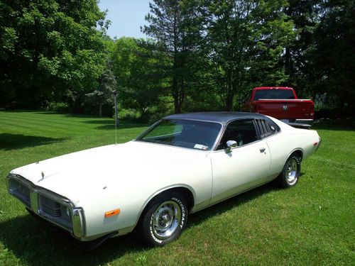 1973 Dodge Charger S/E, 440, slap stick auto. on floor w/ console, 8 3/4 323 sure grip posi, air cond., complete TTI exhaust system w/ flow masters and machine gun tips, front and rear sway bars, car is uncut and orig., black bucket int., chin spoiler, gull wing, rear window louvers, also with the car comes a complete 72 hidden headlight grill assy., 1 pr. super bee tail lights, 1 pr. R/T tail lights, 1 super bee power bulge hood, 2 deck lids, 71 rear bumper w/ brackets, new outer door handles, mirrors, set of weld wheels, and other misc. parts, 69k mile South Carolina car, surface rust starting at bottom of rear quarters but VERY solid. needs paint and vinyl top but very presentable, drive anywhere, please don't ask questions about reserve price. car is a bargain at the reserve so BID TO WIN! I will be glad to answer any other questions.