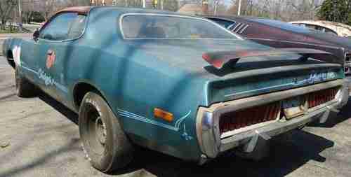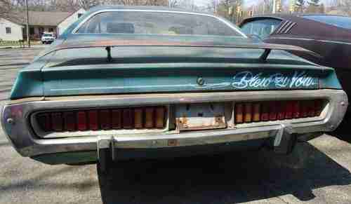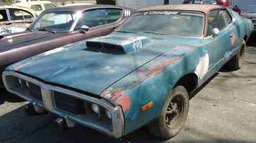 NO RESERVE - 1973 Dodge Charger with rare 440 Magnum engine. Purchased to restore but unfortunately have too many projects going on. Engine is a Rare 440 big block, believed to be (E440) 1969 -- 440. Has large double pumper carburetor, headers, holley street dominator high rise intake, M/T aluminum valve covers. Excellent looking old school setup which has been sitting for years stored away. Someone could have this setup running again in short order as engine has not been touched in a while per previous owner. Clean under body, very straight Old School Charger with minimal rust. Car exterior is complete with only the windshield aluminum trim missing. Interior is missing the plastic center console, shifter knob and backrest of the rear seat. Tires hold air but will need to be replaced and brakes redone. Wiring for Mopar electronic ignition will also have to be redone. The engine does turn-over freely, oil, transmission fluid and spark plugs look good. Driver side floorboard would have to be replaced/welded. Free and clear title with VIN numbers and buck tags present on fender aprons. Good solid project car for restoration or excellent father son project with No Reserve. Please bid with complete confidence after reviewing my feedback. This car is being sold as is where is with no warranty expressed or implied. Feel free to email any questions or call Gerry at 786-624-9641 as I have tried to give an accurate description of the car to the best of my knowledge. Serious bidders and buyers only please. If you are new to Ebay or have zero or negative feedback please call me to discuss. $500.00 dollar non-refundable deposit due within 24-hours of auction end and full payment due within 3 days of auction end. Shipping is completely buyers responsibility but I will assist in loading if required. I reserve the right to end auction early as vehicle is being sold locally. Thank you for looking.