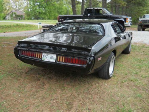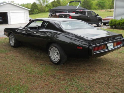 here Is my 1974 dodge charger se, it has a 318 engine with automatic transmission, nice driver black paint has the usual chips here and there small dent in the front bumper but looks nice and gets attention not a show paint job by no means , but nice straight southern body , bumpers are also painted black giving car a nice look, car runs and drives good has new carbuerator, nice black interior, new carpet, seats reupholstered, trunk pans solid, plastic louvers on pass back window cracked, power steering, power brakes, car has a/c but is not working, everything is there but no belt on compressor, compressor turns free and I am sure there is no Freon in it I haven't really looked into it because it isn't that important to me I just enjoy driving it, tires have 80 % tread rims are 15x8 aluminum that look nice, has dual exhaust, I hate to see it go I really wanted to put a 440 in it and keep it but I have other projects that need attention, this car would make a great driver as it is, or you could drive now then build later, this is a good solid car that would be great to build into a nice sreet rod, feel free to ask questions or call (931)581-0612 my name is Alvin, thanks for looking