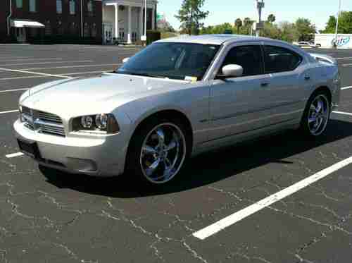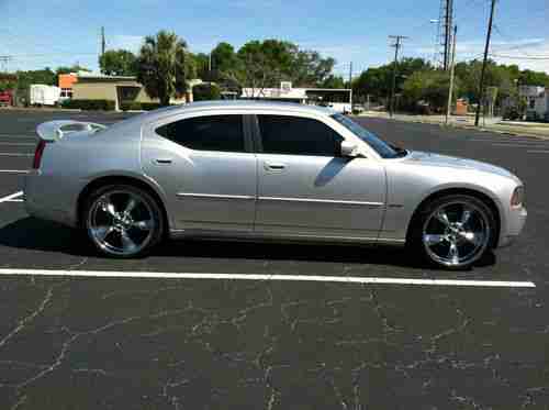 This is a 2006 Dodge Charger R/T 5.7L Hemi. It has 67,100 miles on it. There is little to no damage to the vehicle. Front bumper passenger side on the bottom has some scrapes as seen in the picture. The Charger has CD player with auxiliary port, leather, power seats, windows and locks, tectronics, cold A/C and 22 inch rims. The rims are a little banged up due to oxidation.