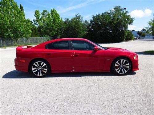 This 2012 Dodge Charger comes with a CARFAX Buyback Guarantee, which means you can buy with confidence. This is a well kept ONE-OWNER Charger SRT8 with a full CARFAX history report. This Charger SRT8's level of quality is not meant for just anyone. It's meant for the person who strives for a classy, comfortable, and luxurious car. This wonderfully maintained Dodge Charger is in the top 10% of its class when it comes to cleanliness and condition. AutoNation Cadillac Port Richey wants you to drive off the lot with the confidence of knowing that your newly purchased Charger SRT8 is still covered under the Dodge factory warranty. This peace of mind will be truly irreplaceable when purchasing a lightly-used vehicle. The incredible 2012 Dodge Charger SRT8 is an invigorating performance machine that will pump adrenaline into any driver who dares to take the wheel. Do you really need any other reason to want one? This Charger SRT8 comes standard with features that are essential in the 21st Century. However, Dodge decided to take it one step further and add a handful of quintessential options that will undoubtedly add to this vehicle's quality and value. Find the quickest driving route in this Charger SRT8 using the installed navigation system. This nav system is one of the easiest to use and will help get you where you need to go quickly! The paint on this Charger SRT8 is flawless no scratches, no blemishes, no need to spend extra money on touch ups. AutoNation Cadillac Port Richey is proud to offer this 2012 Dodge that truly a must-have. This vehicle's wheels are one of the many attractive features that this Charger SRT8 has to offer. This Dodge includes: REDLINE (3) COAT PEARL 6.4L SRT HEMI MDS V8 ENGINE (STD) More information about the 2012 Dodge Charger: The Dodge Charger's aggressive looks hint at the classic muscle car that shared its name, yet the car is a roomy, practical and comfortable mid-size 4-door sedan for the 21st century. At the top of the line, the new Call our Internet Sales Department and Save an additional $200 off the Internet Price listed above.