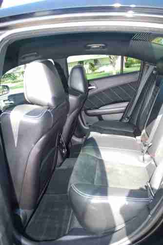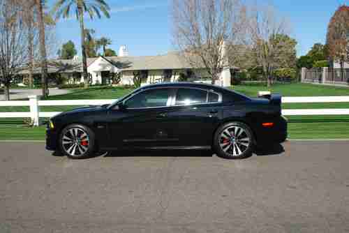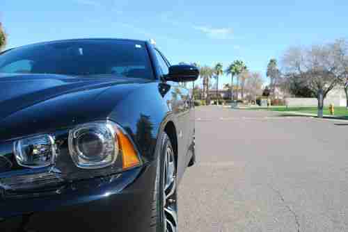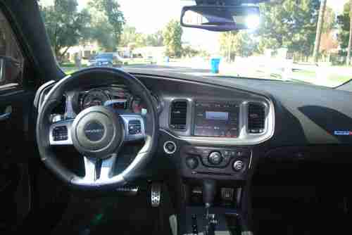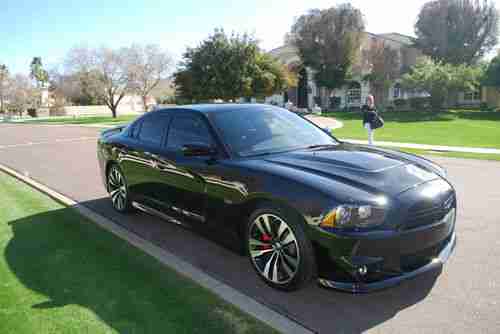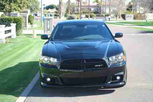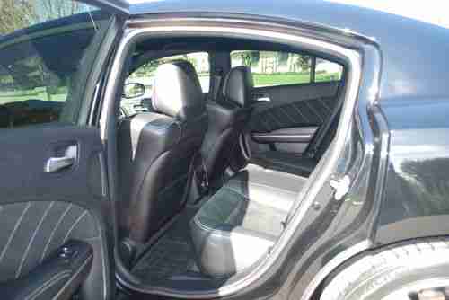 This is a beautiful 2012 Dodge Charger SRT8. Black exterior with a Black interior, with leather sport seats, Navigation, Bluetooth, MP3 and USB input, CD Mp3 player. Brand new tires that have only 200 miles on them. This has the full factory warranty. I will take any photos you wish to see more of. Light scratch by driver door sill, and a few light rock chips in hood.