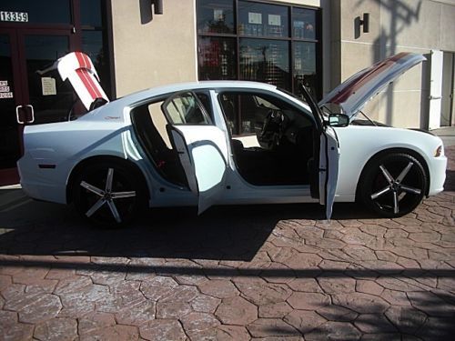 2013 Dodge Charger 3.6 Liter 22" Wheels & Tires White Red Racing Stripes Wing 13 on 2040-cars