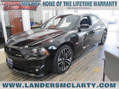 This outstanding example of a 2013 Dodge Charger SRT8 Super Bee is offered by Landers McLarty Autoplex Bentonville. Just what you've been looking for. With quality in mind, this vehicle is the perfect addition to take home. This is the one. Just what you've been looking for. This is about the time when you're saying it is too good to be true, and let us be the one's to tell you, it is absolutely true. More information about the 2013 Dodge Charger: The Dodge Charger is a full-size sedan, offering strong V6 and V8 engines, along with rear-wheel drive--or all-wheel drive for some models. Chrysler also claims that the all-wheel drive system that's available in the Charger is the most advanced system offered in its class, as it completely disconnects the front wheels. Styling itself is also a big part of the Charger's appeal, as it pairs retro-muscle-car cues with modern touches. Also, the R/T and SRT8 models offer phenomenally good straight-line performance, with a drag-strip-worthy quarter-mile time in the high 12-second range, or zero to 60 in less than five seconds--yet with top speed at 175 mph and braking distance at just 120 feet from 60 mph, the SRT8 also chases supercars. Base Charger SE models are value-priced at about the same money as front-wheel-drive V6 mid-size sedans, while Dodge boasts that the Charger R/T is the most affordable V8 sedan in America and the Charger SXT is most affordable full-size car with 20-inch wheels. Gas mileage isn't bad either, provided you go for the V6, which achieves up to 31 mpg on the highway with rear-wheel drive or 27 mpg with all-wheel drive. Strengths of this model include available all-wheel drive, wide range of models, modern safety features, Retro-stylish design with modern details, good gas mileage for V6 models, and muscle-car performance We are a community based dealership, we have been in business for almost 40 years and not going anywhere. We are about building a relationship with our customers, you'll appreciate the way we do business. You can buy a car anywhere but no one can give you the value that we can. ASK FOR GERALD BROWN FOR ALL INTERNET SPECIALS!