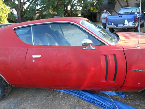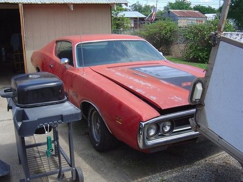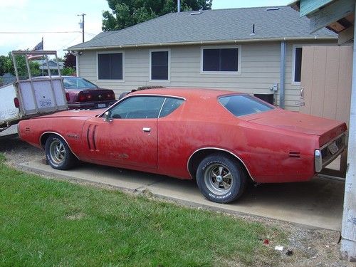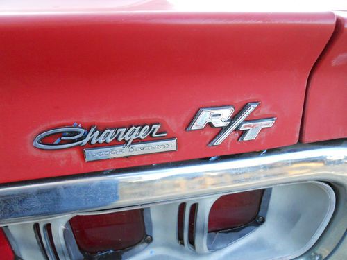 I will be adding more pictures later tonite, please be sure to comeback and look for more pics. For sale is a barn find 1971 Dodge Charger R/T project car. Been stored away for years and has only been outside for the last few years. This is a great project for someone whom wants to do easy work and can't afford $30k-$60k done car. This car is missing the original motor and trans, but that could be a plus for you. You can put another 440 in it, a 440-6 engine, big inch HEMI engine or a new 6.1 Hemi to make it a sweet ride. Since your starting out with a real 'U' code R/T Charger, it won't be a clone. This car has the correct numbers on the radiator support, fender tag, cowl, door tag numbers with clean matching paperwork. I have not look for the built sheet, so it could still be in the car. Body on this car is still pretty nice with minor, nicks, scrapes, small dings and dents, one random bullet hole and a couple cb antenna holes. The only rust on this car is about a one inch size spot on the driver side front edge of the quarter panel. There is no rust in the fenders, doors, hood, wheels wells, frame rails, cowl, floors, roof, trunk lid, door jams. Even the trunk has no rust in it! Check out the trunk, paint in there looks to nicer than what's on the body of the car. The black dirt in the trunk is the factory trunk mat that dried out and turned to powder and easily wipes away. The factory red paint is dulled and worn in a few places on the car, but probably could be used as-is til you had the time to paint it, or go for that vintage patina look people are paying good money for these days. Car has all the rare and cool stuff still that makes it so much sweeter Like Louvered Power bulge hood, louvered taillights, louvered doors, trunk lid has factory spoiler cut outs, 150 mph Rally dash, Am radio, R/T badging, bucket seats, duel exhaust, factory sport mirrors, rear window defroster, ac optioned, power steering, power disc brakes, heavy duty suspension, factory 8 3/4 rear and probably a few more items I'm forgetting about. Louvered insert is off the car and stored away. Also comes with factory driveshaft, clutch fan assembly and some misc stuff. Car is pretty good condition for being stored away all those years, I can even push it with one hand and moves around freely. Interior is in pretty good condition too. Has bucket seats and nice seat backs (could use a replacement front seat covers). Steering wheel is cracked, has cruise control unit in the column, buddy seat, very nice top and bottom door panels. Headliner is also nice and the R/T emblem is still in the dash. Could use a dash pad and carpet, but otherwise it's not too bad. If your not in love with the buddy seat, I have included a floor shift power steering column that goes with the car. You can either put in a auto console, or upgrade to a 4 or 5 speed manual trans (4spd conversions rarely ever hurt the values of these cars).Front and rear gravel shields are damaged, I have a new AMD repro cut out rear valance that goes with it. Bumper have good chrome, rear has a dent in it, not to bad. Engine compartment is still intact with wiring harness. A good starting point for a project, without having to replace expensive body panels or missing rare parts.I've taken 120 pics of this car and can not find any rust anywhere and shows how nice this car is. You can click on any photo and be taken directly to my photobucket account to view them. Winning bidder will need to send a $500 non refundable deposit within 24 hours of auction end the remaining amount to my Wells Fargo Account or a certified US bank cashiers check. If your local and like to pick up, then cash is perferred and with give a discount of $200 for doing so. Vehicle will not be released until funds have cleared. Shipping is the responsibility of the buyer. I do have 2 guys locally that can ship cheaply to California and Nevada and other guy who to transport to the rest of the US. This car has been described to the best of my ability and is sold as-is, all sales are final and no refunds. If you have more questions, please feel free to call me at 408-623-3290 9am-9pm CA time zone. . . . . . . . . . . . . . . . . . . . . . . . . . . . . . . . . . . . . . . . . . . . . . . . . . . . . . . . . . . . . . . . . . . . . . . . . . . . . . . . . . . . . . . . . . . . . . . . . . . . . . . . . . . . . . . . . . . . . . . . . . . . . . . . . . . . . . . . . . . . . . . . . . . . . . . . . . . . . . . . . . . . . . . . . . . . . . . . . . . . . . . . . . . . . . . . . . . . . . . . . . . . . . . . . . . . . . . . . . . . . . . . . . . . . . . . . . . . . . . . . . . . . . . . . . . . . . . . . . . . . . . . . . . . . . . . . . . . . . . . . . . . . . . . . . . . . . . . . . . . . . . . . . . . . . . . . . . . . . . . . . . . . . . . . . . . . . . . . . . . . . . . . . . . . . . . . . . . . . . . . . . . . . . . . . . . . . . . . . . . . . . . . . . . . . . . . . . . . . . . . . . . . . . . . . . . . . . . . . . . . . . . . . . . . . . . . . . . . . . . . . . . . . . . . . . . . . . . . . . . . . . . . . . . . . . . . . . . . . . . . . . . . . . . . . . . . . . . . . . . . . . . . . . . . . . . . . . . . . . .