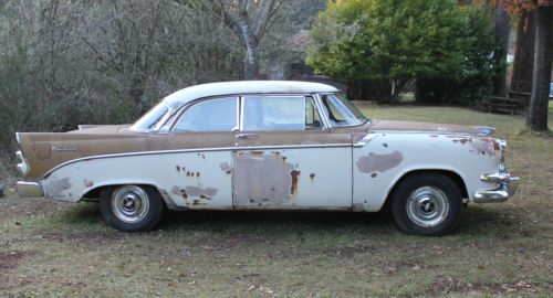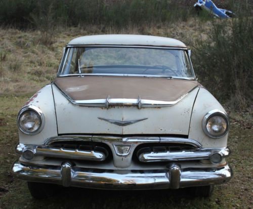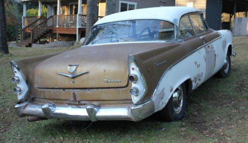 Here's a car you don't see too often... a 1956 Dodge Coronet Lancer, 2-dr H/T. It is almost complete, but still a project. Here is the description: BODY: very straight, some patches of surface rust here and there. There is a small area under each tail light unit with some holes, as shown in close-up. All the trim is there, with the exception of the LANCER script on each front fender, and the DODGE script on hood. Some other trim pieces that don't appear in photos are in the trunk. The antenna is gone, though. This is a really solid car, in it's original gold & white 2-tone colors. One tail light needs a red lens - it has 2 clear ones. Chrome on front grill pieces is excellent. Bumpers are straight but OK, and need re-chromed. GLASS: Driver's side window is cracked, and windshield has some delaminating going on one side (see close-up) ENGINE: This V8 Red Ram is a 315 ci poly motor. It came from a '56 Dodge Royal donor car - it ran great when it was installed 3 years ago. Still needs linkage hooked up. Radiator has been rebuilt. I'm not sure about tranny, but the donor cars was a driver, so I'm sure it is OK. TIRES: they hold air - that's about it. INTERIOR: It needs totally redone. The original seat covers are still on seats. Door panels are good for patterns only. All door handles & window cranks are in a box. Dash looks pretty good too. I have 3 complete extra dashes, so if you need a part, I have it most likely. Floors have been patched; drivers side has new piece welded in, and the floor is covered in what looks like fiberglass painted silver...not sure what that process was. But it feels solid. No headliner, but bows are in trunk. Trunk has one area of rust holes on left, as shown in close-up. The bottom of the spare tire well is even solid! This would make a really great project - it's all there and solid. Unfortunately there is no title to this car. It has Oregon license plates from 1956, ( 8E 1233) and the DMV shows nothing on record; it's been out of the loop a long time. I will provide Bill of Sale. Arranging transport is buyer's responsibility, but I will help on this end, such as towing it to a pick-up area. Any questions feel free to call or email me: (Terry) 541-726-8467 eves PST Good luck bidding! You won't be disappointed.... PS Several photos did not load properly; I can email them upon request