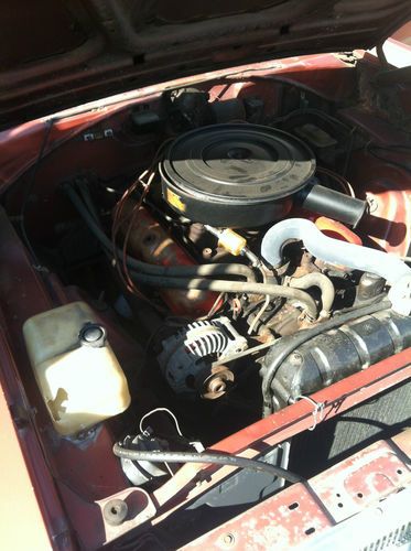 The 318 engine starts and runs. However it will most likely need a valve job or engine rebuild as it does blow some blue smoke when revved up. I do not have it running thru the gas tank at this time due to the tank not being used in many years and probably needs flushing out. I just have a small bottle of gas in the engine compartment. It shifts in and out of gear, however there are absolutely no brakes (never looked at why) so its not drive-able.