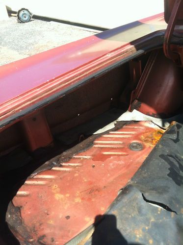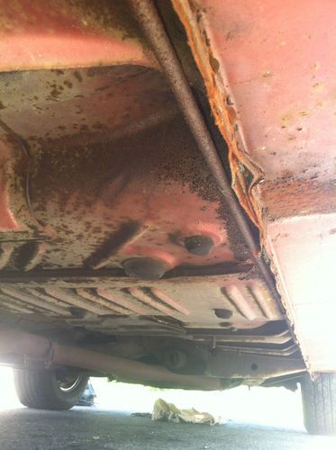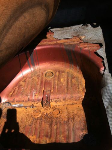 The floors are all in really good shape. The only rust/hole I can find is directly under the gas pedal. Its about 1"x 2" or so. Trunk is very good also with just a couple rust holes in the dropped down spare tire area. The frame looks straight and solid as well. I cannot see any damage that had ever occurred to the car.