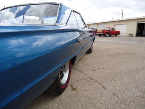 NO RESERVE AUCTION.....................................1967 DODGE CORONET R/T, SUPER SOLID RUST FREE TEXAS AND NEW MEXICO CAR, refinished in original color of 881 bright blue metallic over a stunning white bucket seat interior.... powered by a 440 four barrel with 727 torqueflite automatic controlled via factory floor shift with console , manual steering and brakes with a 3.23 sure grip 8 3/4 rear end. rolls on restored road wheels with new firestone red line tires. has original fender tag and certicard and partial build sheet. In addition to fresh paint all trim has been restored including new show chrome on front and rear bumpers, new hood and rocker trim, grill and grill surrounds.....door , trunk and window weatherstripping have also been replaced as well as new trunk mat and restored jack components. The interior has been restored with all new legendary interior items including carpet, headliner, front and rear door panels, package tray and of course gorgeous white seat material with new seat foam on restored and detailed seat tracks. console with factory tach has been refurbished as well. All mechanicals are fresh as the 440 and trans were both rebuilt with less than 500 miles on each. complete front suspension was rebuilt with alignment as well as all brakes including new master cylinder and brake lines. new complete underhood wiring harness and full exhaust system with x-pipe round out the mechanical overhaul. This 67 r/t starts, runs and stops as good as it looks and is a genuine solid mopar musclecar that would make anyone proud at the car show or cruise night!!! I do welcome visual Inspections with appointment.......please note this vehicle is for sale elsewhere and auction may end at any time.....please e mail or call with any questions.....915-490-1652cell or 915-598-1302 work remember: no reserve.......bid to own!!!!!!!!!!!!!!!!!!!!!!!!!!!! |