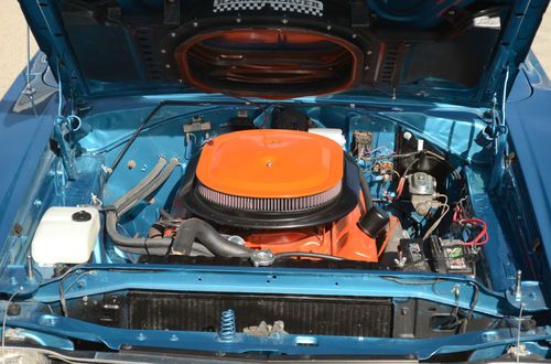 The motor we installed is a non number matching 440 that was professionally built and dyno tested, this motor started life as a bare 440 block, I supplied a 6-pack crank and rods. the crank was fully internally balanced and the rods resized with ARP wave loc bolts. Pistons are sealed power forged 440-6 flat tops, .030 over.. The oil passages were detailed and enlarged as well as using a new mopar performance hemi oil pan and high volume pump. The heads were totally rebuild with new stainless valves, hardened seats, springs, retainers and adjustable rocker arms... bowls were cleaned up and gasket matched to the correct iron 4 barrel intake. The cam we chose was a mopar purple shaft 440-6 grind using hydraulic lifters. All gaskets and seals are felpro. It uses the stock cast iron exhaust manifolds and runs on pump gas. Carb is a new Edelbrock/carter 750. The motor made 376 hp with 470 ft lbs or torque @3100 rpm