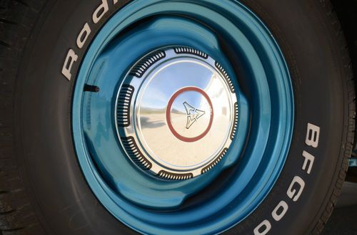 Tires are new BFG radials mounted on the factory steel painted rims and chrome original hubcaps.