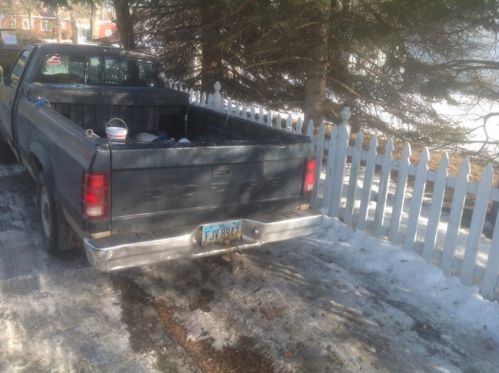 This 1992 Dodge Dakota is my daily driver. 117682 is the current mileage but I will continue to drive it until sold, approximately 60 miles per day. When I bought the truck summer of 2012 it did not run...needed a starter. Installed a new started and fired right up. At that time I put new spark plugs and spark plug wires. I have replaced the rear brake lines...rebuilt the front brake calipers...install new front brake pads...bought new front tires and had alignment last fall after replacing passenger side tie rod...replaced the thermostat and new water pump last year...summer of 2012 installed new fuel pump ( in the tank)...bought a class III trailer hitch at the junk yard and installed along with flat wire trailer hookup...new fuel filter...replaced battery last summer...charged the air conditioner last summer...reverse flush the heater core...and put a straight pipe with thrush glass PAC...last put in a used pioneer amfm CD player and speakers in doors. Now the bad...windshield is cracked on drivers side but does not interfere with vision...drivers door lock is broken...drivers side floor had a rusted hole so I put a piece of sheet metal under the carpet to cover the hole...rust at various locations as seen in pic's...clear coat pealing and parts had an orange peal appearance...passenger side rear tail light cracked...could use a new exhaust as now I am running with the straight pipe and glass PAC...had a problem with hot wire to fuel pump, fixed however now gas gauge not working and last the rear brakes are drum brakes and need attention. More good...bed is solid and comes with the bed liner...heater and air conditioner work good...drives good and is a solid work truck. Bucket seats, power locks, power windows, cruise control works, and tilt wheel.