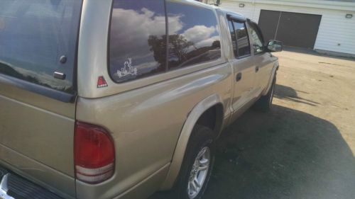 This is a 2002 Dodge Dakota SLT 4x4 4.7 V8 with automatic transmission. This vehicle starts, runs and drives, but it has a problem with the engine. I believe it is a bad head gasket as there is a coolant smell and coolant can be seen in the oil. This vehicle is being sold As-Is. The overall vehicle is in good condition. The body is in good condition with two rust bubbles above the rear wheels typical for dodge vehicles. The underneath is clear of any rust damage and the frame is in good condition. The transmission was rebuilt only 20k miles ago, new alternator, and many new parts. The interior is in great condition with no rips or tears in the seats. The vehicle comes with a matching LEER fiberglass cap. Aluminum alloy wheels, and the vehicle has a clear title.
