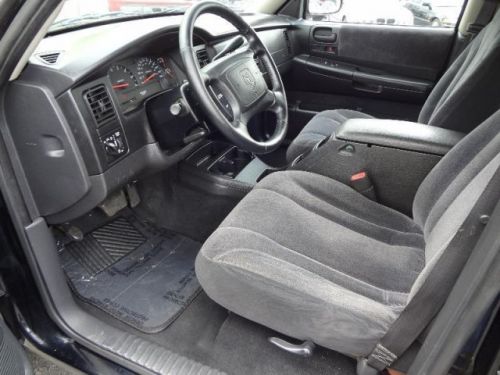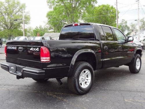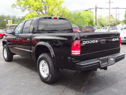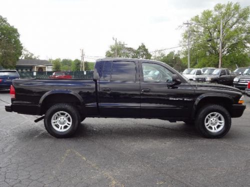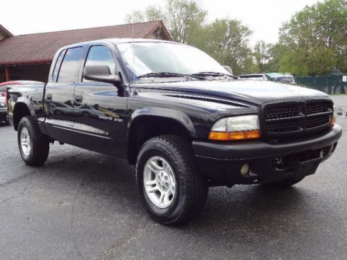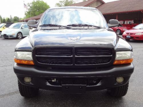 Absolutely impeccably clean and super sharp Dakota Quad Cab 4dr Sport 4WD finished in Black over Charcoal interior and equipped with the powerful 4.7L Magnum V8 engine and automatic transmission. This truck is in super clean condition inside and out and really must be seen to believe just how clean it truly is. The paint and body are in near perfect condition with no dings, dents, or major scratches to be found and excellent bumpers. The truck runs and drives like new and has just been fully serviced and inspected including all new tires and full check over. It is loaded with features including bigger alloy wheels and tires, Sprayed in bedliner, HD Tow package, Electronic 4WD system, All power options, Fog lamps, Bucket front seats with console, Auto dimming mirror, OBC in overhead console, and more. Truly the cleanest example you will find anywhere at any price! Please visit us at our website, www.autolivery.com, for a COMPLETE description of this vehicle, including more pictures, vehicle and warranty info. A link to our website can be found in the "About the Dealer" section found in this ad.