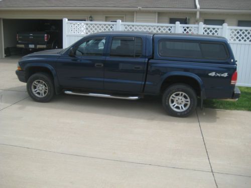 2004 Dodge Dakota SLT 4x4. Air, tilt, cruise, PW, PL, AM/FM/CD, overhead information center, Nerf bars, spray in bedliner, Century topper, dual exhaust, cold air intake, tow package, custom fit floor mats, dash mat, in channel rain deflectors. Rear bumper has minor rust. Clean door panels, rocker panels, cab corners, wheel wells, fenders, ect. Interior is clean with no rips, tears, or stains. Very clean great running truck. Have always used Castrol synthetic with Lucas additive and have used Lucas fuel additive with each tank of gas. This is a 2004 and it has a few dents (door dings) here and there. It is not a show truck, but has hauled a lot of deer, turkey, ducks, and pulled the fishing boat to catch alot of fish. It is a clean good running truck for the purpose of being used as a truck. The air conditioner works on high only. Looked into getting it fixed and the price is around $200. This truck KBB for around $9,261 in good condition. This truck is in very good condition. This is a daily driver, so the mileage will go up during the course of this auction. I drive 32 miles a day to and from work.