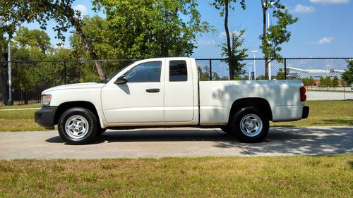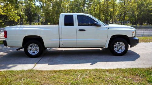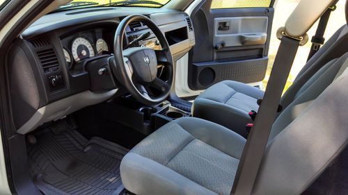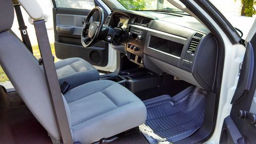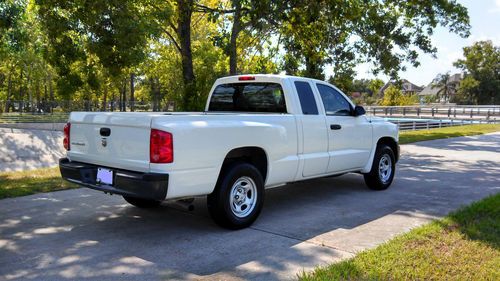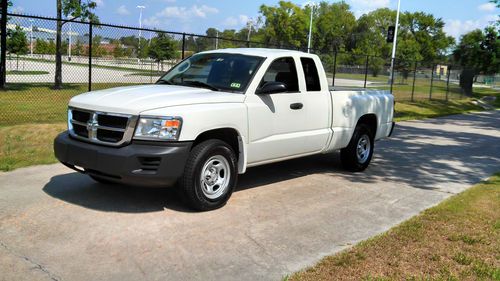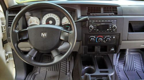 2008 DODGE DAKOTA EXTENDED CAB WORKFORCE TRUCK.. 3.7 ENGINE V6 AUTOMATIC... I WILL PROVIDE ACCURATE INFORMATION WITH MY BEST OF KNOWLEDGE... THIS IS A TRUCK THAT IS VERY CLEAN INSIDE AND OUT. THE EXTERIOR BODY ITS ALL AROUND ALMOST PERFECT WITH PAINT STILL VERY SHINY. IT HAS A VERY LIGHT DENT ON THE BACK LID GATE THAT IS BARELY VISIBLE. THE BED ON THE TRUCK SHOWS SIGNS OF WEAR AND SCRATCHES, BUT NO NOTICEABLE DENTS... THE INTERIOR IS VERY CLEAN, NO SCRATCHES, TEARS ON SEATS OR CARPET. I WOULD SAY IS AT LEAST A 9 OUT OF 10... THE TRUCK HAS MANUAL LOCK AND WINDOWS AND DOES NOT HAVE SEATS ON THE EXTRA CAB SPACE.. THE TRUCK IS IN GREAT SHAPE MECHANICAL WITH NO  ISSUES OR WARNING LIGHTS... THE TIRES ON THE TRUCK ARE AT LEAST 85% TREAD LEFT... GOOD LUCK WITH THE BIDDING..WE STRIVE FOR CUSTOMER SATISFACTION!..THANKYOU!