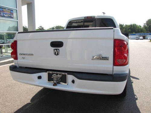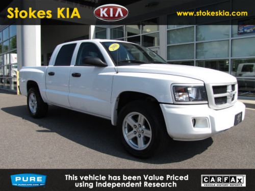 Crew Cab! Are you READY for a Dodge?! Dodge has outdone itself with this great-looking 2008 Dodge Dakota. It just doesn't get any better at this price! Awarded Consumer Guide's rating as a 2008 Recommended Compact Pickup. New Car Test Drive called it ...smooth and quiet...steering is light for easy maneuverability in crowded parking lots and the Dakota responds quickly on mountain roads and tracks nice and straight on the highway... The quality of this terrific Dakota is sure to make it a favorite among our educated buyers. As you do your comparison shopping, you will see Stokes Kia offer some of the best values in the market. We will provide you a Carfax, Comprehensive Vehicle Inspection, and how we arrived at the price. We may not be the lowest, but if you want to know who is we will show you that too. Call or Stop by Contact Stokes Kia at 888-355-7122 in Charleston, South Carolina. Excludes tax, tag, registration and title and includes $399.50 Administrative Fee. Prices do not include destination charges, dealer add-ons, tax, license, and does include $399.50 Administration Fees. We offer the largest selection of used vehicles in the Carolina's with the best pricing out there. If you don't believe us, give us a call and we will show you.