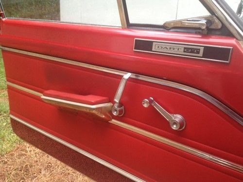 This is an all original 1964 Dodge GT. Everything works except the lighter. The original stereo was replaced with a modern CD player prior to my ownership. The car always starts right up and can be driven anywhere. The original mileage is approximately 92000.00. To pass Virginia inspection, I had the manifold gasket replaced. Everything else is in good order. This has always been a Richmond car, so it has a rust free frame and floors. The body has minor surface rust and a few dings. The interior is all original and very nice. I have the original owner's manual and the Dodge Dart piggy bank that the dealer provided. (Picture to follow)