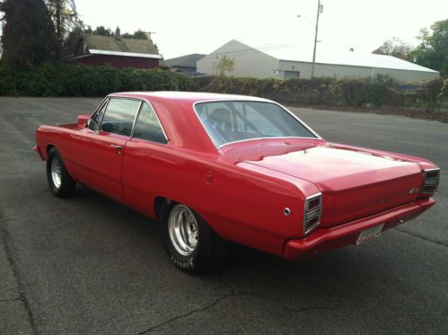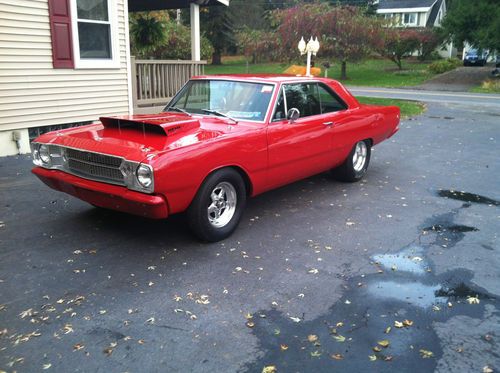 THIS IS A 1968 DART THAT STARTED LIFE AS A 6CYL AUTO THAT WAS RUST FREE, EVERY NUT AND BOLT HAS BEEN REMOVED IN THE RESTORATION OF THIS VEHICLE. IT STARTED IN 2002 AND WAS COMPLETED IN 2010 UNDER CARRIAGE IS COMPLETELY DETAILED AND PAINTED. THERE IS WAY TO MUCH TO LIST SO I WILL TAKE QUESTIONS AS THEY COME.IT HAS A 530 INCH ALUMINUM HEADED HEMI WITH A 614 LIFT MOPAR CAM, 1000 PRO SYSTEMS DOMINATOR CARB.ALUMINUM RADIATOR THAT KEEPS IT NICE AND COOL DURING STREET DRIVING.MANUEL SHIFT REVERSE PATTERN VALVE BODIED 727, WITH A 4000 8 INCH ATI CONVERTER.83/4 REAR DIFF WITH 430 GEARS RUNS ABOUT 3000 GOING DOWN THE HIGHWAY.PAINT AND BODY ARE NEAR FLAWLESS WITH PANELS GIVEN A LOT OF ATTENTION TO DETAIL DURING ITS RESTORATION.WILWOOD DISC BRAKES FRONT AND BACK.GLASS BRIGHT WORK ALL IN GOOD SHAPE INCLUDING DASH.ALL LIGHTS WIPERS WORK AS THEY SHOULD.THIS CAR IS A TRUE PLEASURE TO DRIVE AND DRAWS ATTENTION WERE EVER IT GOES.THIS CAR CAN BE VIEWED BY APPOINTMENT.PLEASE CALL JOE AT 315-335-4538