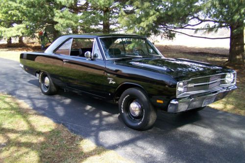 1969 Dodge Dart Swinger crate 410 ci from mopar performance, 520 hp now it was purchased new from local dodge dealer in California Dec 2008 I have the receipt for this motor. car was painted 2007 . 727 transmission with manual valve and street converter, rear end is a spool with 4:11 gears. Cal Tract traction system. the paint on this car is very shiny and presentable, but it is 7 years old. I would rate it as 7-8 overall with some rock chips and minor scratches that have been touched up. this car is a very nice driver, better than many, but don't expect a Barrette Jackson type car. all glass is good, all chrome and emblems are good. the interior is all original and good. car has power steering and power brakes. this car was done right when it was restored and the drive train is awesome. this little car is a rocket, but docile when just driving normal. nice sounding cam, but not to radical. runs on 93 octane pump gas. after the motor was purchased new I was told buy the previous owner it was sent to Stanton Racing to massage a little more horsepower from it. this car drives straight with no squeaks or rattles. this car came from California. cost of just the motor was 12,606.00 before the extra work for more hp. I was told that the entire drive train has about 3,000 miles on it. no oil leaks. everything is as it should be, with the exception of the few small rock chips and scratches that have been touched up. this car was built to be a sleeper and that it is. call if you have more questions 317-535-9847 just ask for Bill