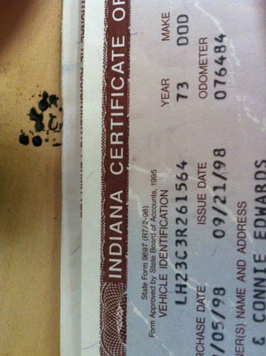 This auction is for a 1973 Dodge Dart Swinger!! New paint/and graphics New exhaust new tires and new wheels (1500 dollars) New mechanicals all the way around and fresh motor paint trunk coated (clean clean car nice interior with new headliner Heat blows hot everything works (light/turn signals/ instruments/ heater/ radio and speakers 103,000 miles (76000 on title from last owner) Runs and drives and looks near perfect!! No reserve...please call for questions.. James 317-364-0165 |