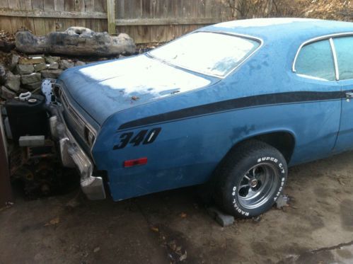 75 Dart Sport, original 6cyl car, Has been converted to a 360 V8 727trans and looks like it has what looks like a 8 3/4 or 9" rear under it but not sure which it is.., Title says car was originally orange,looks like someone painted it to be a 340 Demon replica car. it is NOT a 340! body was re-done awhile ago, does have bondo does have rust, rockers, both front floor pans are soft, rear shackle mount is soft.. Car is mostly stripped but have all the parts (front end, engine, trans, seats), does come with alot of extra parts including glass. ready for resto or turn into a drag car, front disk brakes work. Took this car on trade from a buddy time to pass it on to a builder. Short distance delivery possible for addition charge, other wise bring a trailer can help load. No reserve auction. AS-IS. Title in hand.