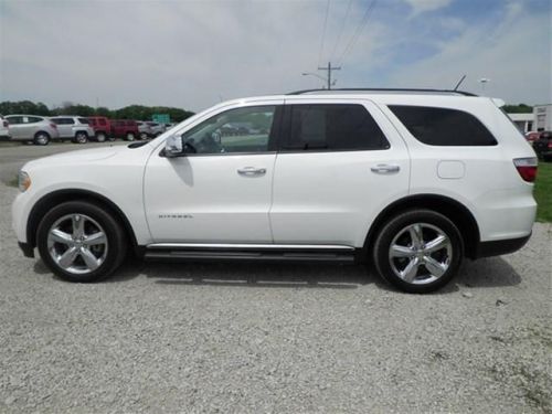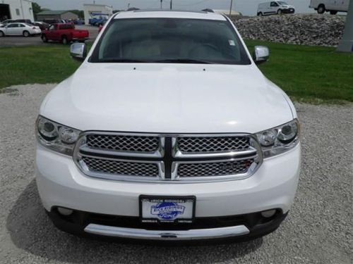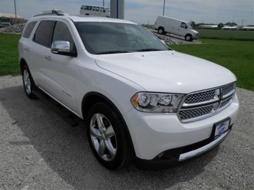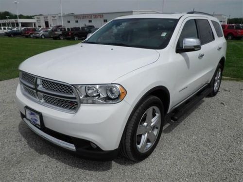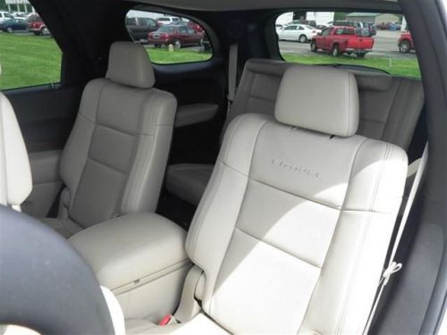 This Durango is nicely equipped with optional equipment such as: cooled seats, rear camera, reverse sensing, 2nd row heated quad seats, power folding 3rd row seat, step rails, power liftgate, remote entry...Relax in the comfort of features like: DVD Player, Navigation, Heated Seats, Leather Seats, Moonroof, Sunroof, Remote Start, Satellite Radio... STOP!! Read this! Gas miser!!! 20 MPG Hwy!!! All Wheel Drive!!!AWD* This Durango is nicely equipped with optional equipment such as: cooled seats, rear camera, reverse sensing, 2nd row heated quad seats, power folding 3rd row seat, step rails, power liftgate, remote entry... Gas miser!!! 20 MPG Hwy!!! This 2013 Dodge Durango Standard features include: DVD Player, Navigation System, Heated Seats, Leather Seats, cooled seats, Moonroof, Sunroof, Remote Start, Satellite Radio, rear camera, reverse sensing, Tow Package, 2nd row heated quad seats, power folding 3rd row seat, step rails, Roof Rack, power liftgate, CD player, remote entry, Chrome Wheels, Navigation system, Leather seats, Bluetooth, Remote power door locks, Power windows with 2 one-touch, Sunroof - Express open/close glass, Heated drivers seat, 4-wheel ABS brakes, Air conditioning with dual zone climate control, Rear air conditioning - With separate controls, Audio controls on steering wheel, Xenon headlights, Universal remote transmitter, Traction control - ABS and driveline, Driver memory seats, Memory settings for 2 drivers, Multi-function remote - Trunk/hatch/door/tailgate, windows, remote engine start, Power heated mirrors, Tilt and telescopic steering wheel, 8-way power adjustable drivers seat, Heated passenger seat, Head airbags - Curtain 1st, 2nd and 3rd row, Passenger Airbag, 5.7 liter V8 engine, 4 Doors, All-wheel drive, Fuel economy EPA highway (mpg): 20 and EPA city (mpg): 13, Exterior Parking Camera - Rear with camera, Heated steering wheel, Remote window operation, Front fog/driving lights, Tachometer, External temperature display, Compass, C Over 400 pre-owned vehicles in stock! Call me TONY WESSELMAN to set an appointment today. 866-729-3036!