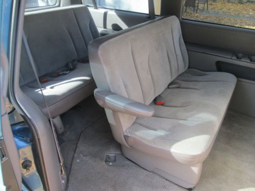 new battery, plugs, wires, cap and recently serviced. oil changed like clockwork, no knocks, clunks, thunks. rides great. but, this is an older car and not perfect. rear tires are 50/50, front tires show good bit more wear. paint on the roof (only) is spotty and faded. this van has NO CD player and no keyless entry (sorry!!). bumpers may have a couple of light nicks, hard to photo. but, speaking of photographs... please see them all. they tell the whole story.