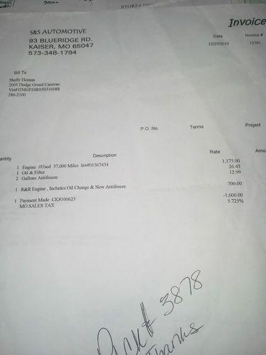 This has been my vehicle for 7 years until I wrecked it this year :( I will never be able to regain it's value to me in a sale so I am giving up. I have always taken very good care of it. I have a file an inch thick of oil changes and maintenance work done on the van. In fact I have the paperwork for a new engine with 37,000 miles on it that I paid 1,200 (1,800 for installation) only 2 years before the accident. I estimate it has around 55,000 miles on the motor. The wreck did not damage the motor except the radiator. The airbags did not deploy. I lost the front right fender, bumper, headlight, hood, and the windshield was already damage before the accident so it should be replaced as well. I've gotten a couple estimates from 1,200-1,500 to have it back on the road as before including the paint job but I was unable to come up with the cash. I ended up financing a new vehicle (also a dodge caravan because they are awesome!) and my van is still sitting in the weeds on an empty lot where I left it. I realize that I should sell the motor separately, then the doors, seats, and body in parts, to get what I have invested in it but I do not have the time or resources to do this right now, so once again, I am letting it go....despite my MANY MANY hours of care a maintenance on this vehicle over the years :(
