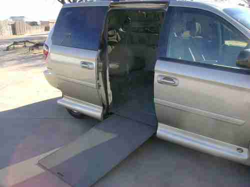 2006 Dodge Grand Caravan SXT VMI kneeling drop floor wheel chair van. Both side doors are power remote as well as the back hatch. The rear vent windows are also power operated. Dual air conditioners and heaters with rear controls. Van runs and drives good. I am a licensed Texas dealer for over twenty years. Van is being sold as is but you are welcome to have it checked out by mechanic. Texas residents will have to pay tax, title and license. The right front door has a dent that you can see in one of the pictures, no paint flaking or cracking in the dent. The van has extremely light hail that i tried to take a picture of the so you could see it on the hood. I am selling with "no reserve" Feel free to call with any questions. 806 789 8111