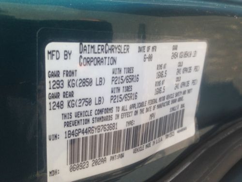 DODGE GRAND CARAVAN Up for auction is a 2000 Dodge Grand Caravan IMS Handicap Van with a Power side door, power ramp and hand controls. The van has the 10" lowered floor, rear bench seat, gray cloth seating, removable front seats, power windows, power door locks, power heated mirrors, A/C front and rear, dual front airbags, tilt and cruise control. It has the spots mounted in floor to tie down a wheelchair. The van runs and drives excellent. It has the 3.3L V6 engine with an automatic transmission. The wheelchair ramp and door work good. Hand control.