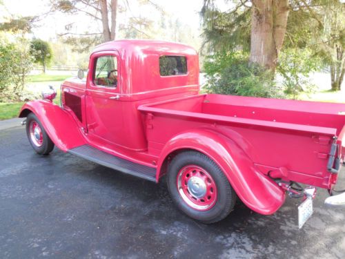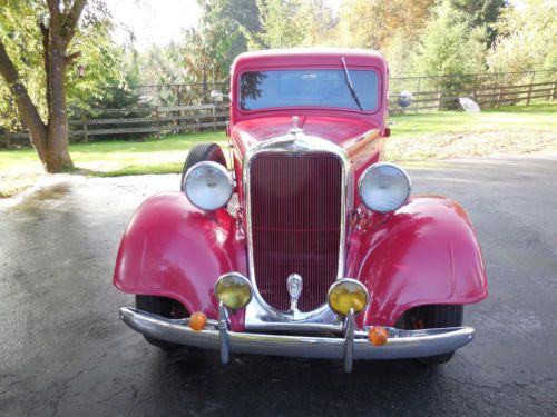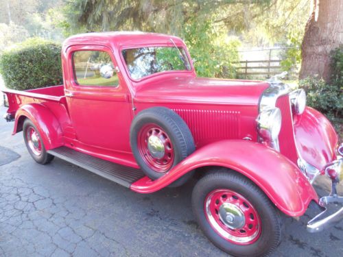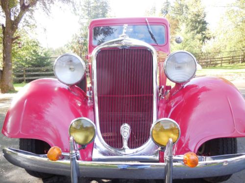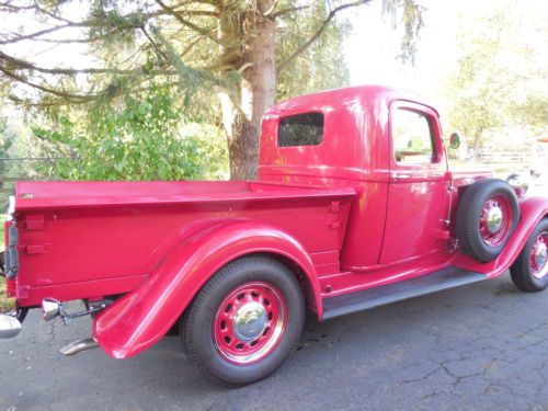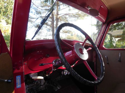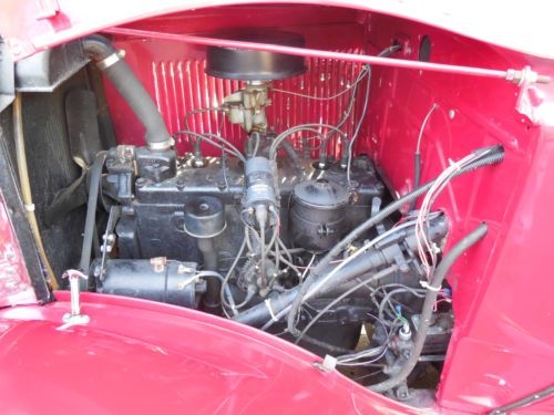 . Flat head 6, three speed on the column. Starts and runs very smooth. Brakes are good. New wiring and a 12 volt system. Tilt out window. Older restoration but shows very well.