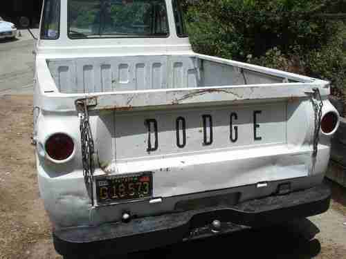 Classic Dodge Mopar project truck for a cool rat rod or restoration. The truck has some rust in the bed and tailgate areas as pictured but is otherwise very solid and rust free in the frame and all structural points. The truck's body is straight and original with minor dents and scrapes.It has no body filler so what you see in the pictures is the honest condition of the body.The engine starts easily and runs ok.I have driven the vehicle for short distances and feel that the engine is running strong despite carb problems.It goes through all the gears smoothly and stops well.It has a new brake master cylinder but may require additional bleeding. The carburetor needs repair or replacement as the plastic part that operates the pump is broken / inoperative.I have changed the oil and filter but not the spark plugs,wires etc.It should be given a proper tune up.Alternator and voltage regulator are new but the system is not charging, I suspect there is a wiring problem- possibly due to aftermarket ignition switch? Lights and cigarrette lighter work but everything else is inoperative. Windshield rubber has shrunk and is missing in some sections.There is no door key.There is no headliner or sunvisors but rods are present.The front bumper is mangled and is pictured in the bed.Tires are in great condition but hubcaps are from a 68 Ford.Vehicle is being sold as a restoration project in AS/IS condition.Please ask any questions before bidding to avoid any misunderstandings as the sale will be FINAL. California title and bill of sale will be provided.The car is currently on DMV non-operational status.