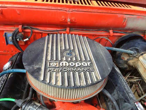 For Sale is a 1970 Dodge D200 truck with a Mopar 440 under the hood. The truck was bought about 5 years ago as a project for my son. We never got around to it, and now it needs a new home. The truck was parked about 2 years ago and has sat dormant since then. I have not drove it but I did drain the gas tank and fuel lines and got it to fire up yesterday. It absolutely runs but needs the carb cleaned, etc. before it is road ready. It is a NM truck so there is very little rust, in fact the body is in great shape for its age. The truck is 2 wheel drive and has an automatic transmission. I bought the vehicle from a mechanic shop owner who was building it for his son, but the truck was to much for his 15 yr. old so he sold it to me. The truck is an absolute beast. The seats have fairly new upholstery to match the truck.