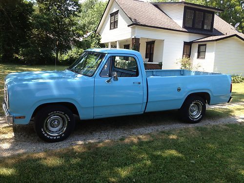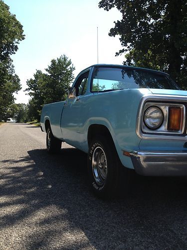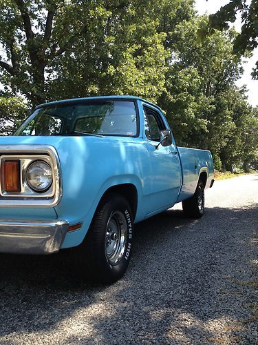 78 dodge d100, this has been my daily driver for the last 3 years and it runs good. 225 slant six with the manual overdrive transmission ( 4 forward gears). Gets good mileage for an old truck, great on the hwy, not so great in town. Power steering, manual brakes, NOS am/fm 8 track stereo, chrome door mirrors, rear chrome bumpers, 15 x 7 inch styled road wheels ( rare, most all of these wheels were 15 X 6), newer tires. I have installed new sending unit in the fuel tank, new fuel line from the tank to the fuel pump, alternator, fuel pump, battery, tires. I would trust this truck to drive anywhere it is not perfect however. The bad, rust in the floor boards, has an oil leak somewhere under the hood but not a major concern, the wipers stopped working last month, the wiper motor is fine just the little plastic clip came off of the arm that connects to the wiper motor. Also has exhaust leak at the collector. Odometer shows 60,000 but i doubt that is actual. All the gauges work however the speedometer is not acurate. Good truck, needs a floor mat or carpet. Please check out pics and call with questions 417 425-7298. Truck is located in sw missouri. I prefer cash when picked up. If truck needs shipped I can work with shipper for arrangements.