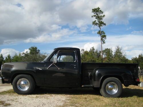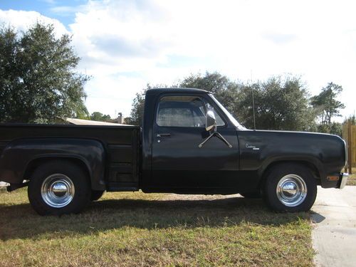 1979 Dodge D-150 Stepside. 80,000 original miles. 2nd Owner. RUST-FREE. All body parts are straight. Ready to paint! Built Slant 6. Factory 4-speed with overdrive. Power steering. Oversized valves. Small Cam. Bored 20 over. Holley 350 carburetor. Dana 355 rear. Vintage Air. New aluminum 4bbl manifold. New high-torque thrust starter. Old-school Offenhauser aluminum valve cover. New radiator hoses. New heater hoses. New coated & heat-wrapped headers. New front wheel bearings. New front disc brakes. Drum rear brakes. Nearly-new tires. New Gabriel rear air shocks. Chrome reverse wheels & hubcaps. New chrome rear bumper. Heavy-duty trailer hitch. New wiper blades. New door seals. Newly-tinted windows. New tach. All gauges work. 18 gallon gas tank. New carpet. New AM/FM radio/CD player with remote. Please contact seller with questions.