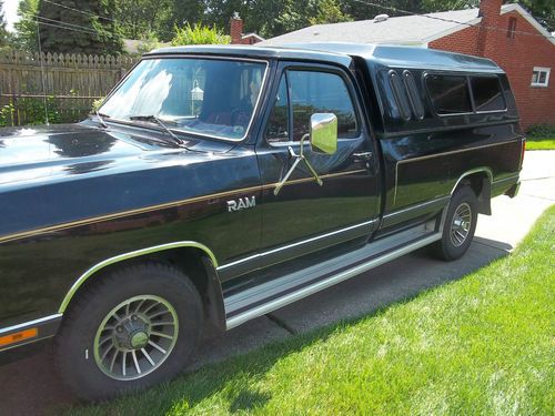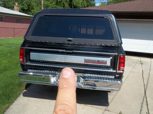 I AM LISTING AND SELLING THIS TRUCK FOR THE ORIGNAL OWNER THIS IS A 1985 DODGE D-100---318-V-8--- W/ 75,007 MILES LIKE NEW STORED EVERY WINTER INSIDE SINCE NEW!!!!!!! NO RUST!!!!!!!HAS NEW MICHLIN TIRES W/FACTORY FINNED WHEELS, DIE HARD BATTERY , A/C , CAP , RUNNING BOARDS , HAS EXTRA FACTORY BENCH TAKEN OUT WHEN NEW AND REAR PAINTED STEP BUMPER NO POWER WINDOWS OR LOCKS ( ALSO TAILGATE HAS DIESEL ON IT HE RE-PLACED AT NEW HE WORKED AT TRUCK PLANT AND LIKED THE TRIM ON THAT ONE BETTER ) ---YOU WILL NOT FIND A CLEANER TRUCK!!!!! ---- ALSO AGAIN THIS IS A ONE OWNER TRUCK VERY NICE CONDITION!!!!!!!!!!!!------- THIS TRUCK IS LISTED IN LOCAL PAPER MAY END AUCTION AT ANY TIME THANKS