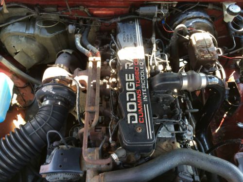 -rebuilt transmission in February 2014, shifts perfectly (have receipt) -clean engine that runs perfectly with no leaks from anywhere -straight body with only a few small rust spots and scratches (the truck is 21 years old, if you're looking for perfect then go look at a newer truck) -no leaks or abnormal noises -new serpentine belt -new battery -3 tires are at 85% tread, 1 is at 60%, spare is 100% -all gages/speedometer/odometer work The bad: -starting to develop the infamous Dodge death wobble on slow speed turns (not sure what the cause is, it's just developing and it doesn't do it all the time) -windshield has a few cracks -rear view mirror needs to be re-glued on -parking brake needs to be replaced (if the cable tightener underneath the truck wasn't seized you could just adjust it and it'd work fine) -vents only blow hot air (lever mechanism for hot/cold is either broken or disconnected) -4WD light bulb is out and does not light up when the truck is in 4WD The truck is partially financed still through USAA. I just bought it recently and wanted to fix it up and make it all sparkly and shiny again inside and out but I have a baby coming in less than 2 months. I don't have the time or money for that like I thought I did. It won't take much at all to make this truck new again. These first generation 12 valve Cummins are very rare to find in great running condition that don't require a lot of work! |