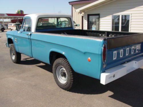 Up for bids is my 1969 Dodge W200 4x4 Power Wagon. Its powered by a 318 4brl. V8, 4 speed manual trans., Manual steering, Manual brakes, RARE Factory AC truck, Lockout hubs, and ONLY 77,296 original miles!!!! RUST FREE Colorado truck. Was refurbished with lots of new parts over the last 4 years or so. Things that I know have been replaced or rebuilt are as follows, New tires & wheels, brakes, brake lines & hoses, exhaust, shocks, front springs, Lockout hubs, Ujoints, weather stripping on doors & glass, paint, interior, 12,500 lb winch. The motor, trans, rear ends were all resealed and painted along with underside. The paint is driver quality and looks good but not a perfect buy any means. It was repaint the original colors and the paint under the hood & inside looks to be all original. Still shows some minor dings but overall a 10 footer. The big deal is NO RUST, Factory AC Truck. Ac is not hooked up but everything is inside the cab but you will have to get the parts under the hood. I have the original 16.5 wheels and other parts that will go with the sale. Call Mike at 402-362-7938 with any questions you might have. NO EMAILS PLEASE. Thanks for looking.