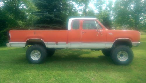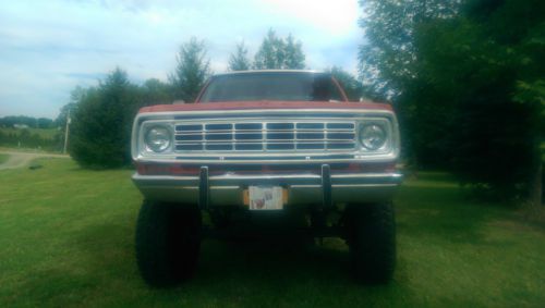 My son and bought this truck on e-bay about 2 years ago as a project, sadly we can not finish it and are forced to sell. It is a 1975 dodge power wagon W200 4x4. It has an 8 inch suspension lift, brand new good year wrangler 37x12.5x16.5 tires, new brakes all the way around including the calipers and wheel cylinders. It has a rebuilt 727 transmission done at a local transmission shop. New ball joints and universals in front axle. New floor boards replaced at a local body shop. The seat has been redone. Both wing windows have rams professionally etched into the glass. The frame is immaculate, 4x4 works and truck is currently licensed in NY and inspected until 5/2015. The body does have dings,dents and scratches as any 1975 vehicle would. This truck originally had air conditioning but no longer does. Ebay made me put a mileage down and it is purely a guess. The engine in this truck is a 1970 440 that we bought from an individual who said it was rebuilt it was in a 1973 dodge truck he had and we bought the whole truck for parts. The engine is a 1970 440, the id pad next to the distributor is as follows G 440 8 17 440, the numbers on the passenger side of the block are 1 21 70 underneath that is 2586430-8 the ID pad to the right of these numbers has 10140399. I have a video of the truck and the engine starting and running, showing the oil pressure on my cell phone that I could e-mail to someone if interested, this engine runs well. Shipping will be the responsibility of the buyer and payment will need to made within 7 business of auction end.