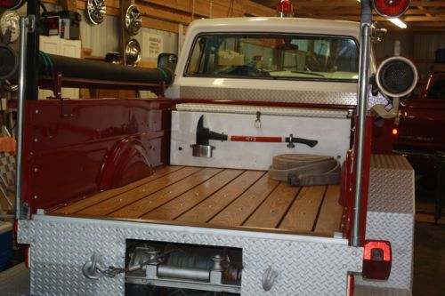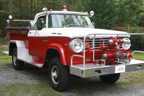 318 Premium V8, 4-speed Trans., (NP435), 4.88 gears front and rear dana 70’s, 23,500 miles, 2 lever/2 speed transfer case, PTO and winch, 133” WB, 9’ bed with reinforced diamond plate sides, 10,000 GVW, new tires, 9:00 x 16 super lug, locking front hubs, power brakes, optional factory full width rear glass, optional custom dash w/ HD gauges , nice wooden bed with stainless steel hardware, only 528 W300’s with V8’s were built in 1967. (www.dodgepowerwagon.com/main/production) I would like to keep this Dodge but a little more than I can handle as far as my knowledge of heavy duty trucks go with all the special acc’s; also would like to see it go to a Power Wagon enthusiast home. Solid body with great sheet metal and very nice professionally done body and paint (many hours of work), comes with shop manual and literature. Needs carpet? I am going to pull it and paint the floor soon , tach not working , E brake not working , the rear emergency lights need to be hooked up, top light works , siren and light works , all the driving lights work , starts good, runs good. Was told by previous owner that pumper and winch worked but I have not tried them. Recent oil