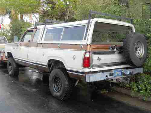 This is a 1978 Dodge Adventurer Club Cab. It has the High Output 440 V8 with 4 barrel carb, P711 automatic transmission and air conditioning. The adventurer was the top of the line from Dodge and had wood grain dash accents, carpeted lower doors, full complement of gauges including a tach (which works intermittently) and a pair of childs jump seats behind the front seat. The speedo shows 63K but I am unsure what the mileage is as it exceeds the speedometer capability. This truck is a beast with tons of low end torque and when purchased 7 years ago was going to be used for hunting etc. but it didn't pass smog and was decided to wait for the 30 year exemption that was nixed by Gov Arnold Schwartzenegger thus becoming a ranch errand runner hauling guys and parts to and from the field on dirt farm roads. If purchased and you are planning on smogging it, it may need a new catalytic as well as a new carb and that should be it all emissions were left in tact. If you live in a state not that doesn't smog or this truck is too old to smog, your good to go. The truck has power steering though there is a small leak on the ps pump. It has a three inch lift done by previous owner and older BFG All Terrain tires, with tread left but may be good to change out. The four wheel drive works great and has a locking pair of front hubs on the front axle. It has dual tanks and a 300 mile range. The body doen't appear to have ever been wrecked but has little bumps and scratches here and there as well as the two stage paint is loosing its clear coat in patches as shown in a couple of pictures.. The rear shell is missing the lift gate as it was when I bought it. There doesn't appear to be any rust in the floors, rockers or lower doors as is prevailant on so many old dodge trucks. It has an extra grille and front bumper as well as a heater box to replace those dinged up parts is so desired. The drivers window regulator needs help up and down and the turn signal switch works but needs help as well. I do not know if the cruise control works. Overall a solid truck and a good runner. Email with any questions prior to bidding. Customer to pay within 7 days of auctions end. Delivery of Pickup is responsibility of buyer and I will store for 30 days after purchase for no additional charge.