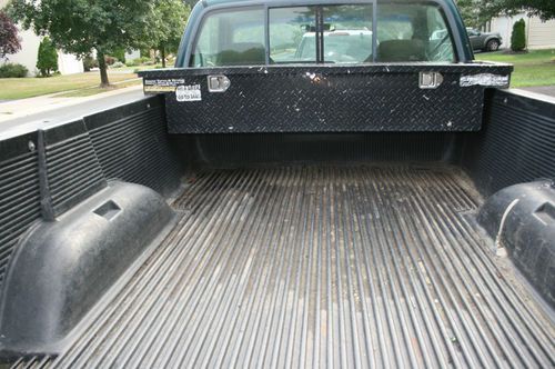 THIS TRUCK WOULD BE A FINE WORK TRUCK FOR SOME ONE WITH SOME WORK. I HAVE PUT ALOT OF NEW PARTS INTO THIS TRUCK INCLUDING; NEW STEERING BOX, WIRES, LEFT FRONT HUB, BRAKES ALL AROUND, REAR WHEEL CYLINDERS. I ALSO PUT TIRES ON THIS TRUCK THEY ARE NOT NEW BUT THEY ARE STILL GOOD. THE WORK THAT I KNOW IT NEEDS BUT NOT LIMITED TO: TIE ROD ENDS, BALL JOINTS AND A MUFFLER. THIS TRUCK IS NOT A BEAUTY IT HAS DENTS AND DINGS BUT IS A GOOD WORK TUCK. THE LEFT REAR OF THE BOX IS DENTED, BUT THE TAILGATE STILL OPENS AND CLOSES. THE TRUCK ALSO HAS A BED LINER AND A DIMOND PLATE ALUMINUM TOOL BOX. THE TRUCK IS BEING SOLD "AS IS". IT RUNS AND SHIFTS FINE AND THE 4 WHEEL DRIVE IS WORKING FINE. THIS TRUCK IS FOR SALE LOCALLY AND THIS AUCTION COULD END EARLY IF SOLD. THANKS FOR LOOKING.