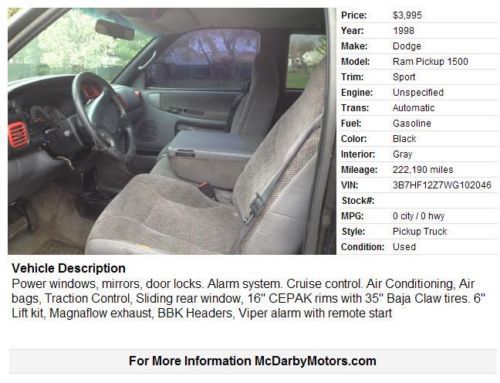 1998 Dodge Ram 1500 Pick Up With Lift Kit And 35 Inch Tires on 2040-cars